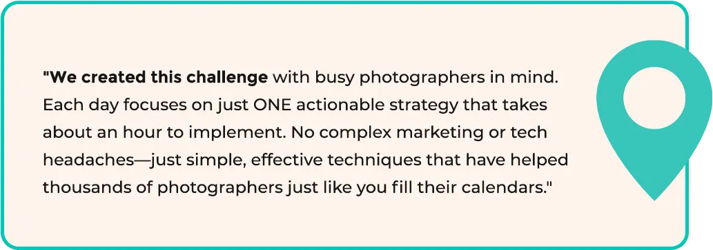 A step-by-step training workbook to use during the 5-Day Spring Photography Client Scavenger Hunt